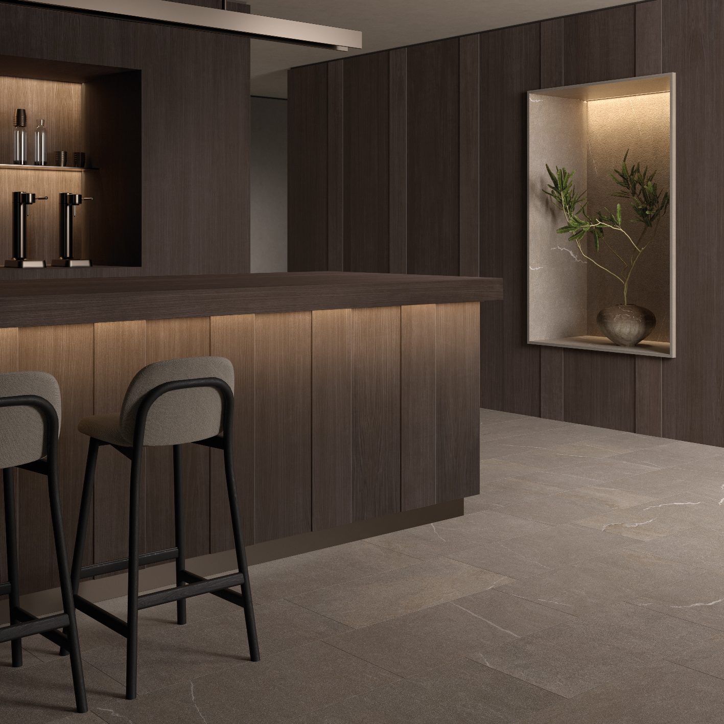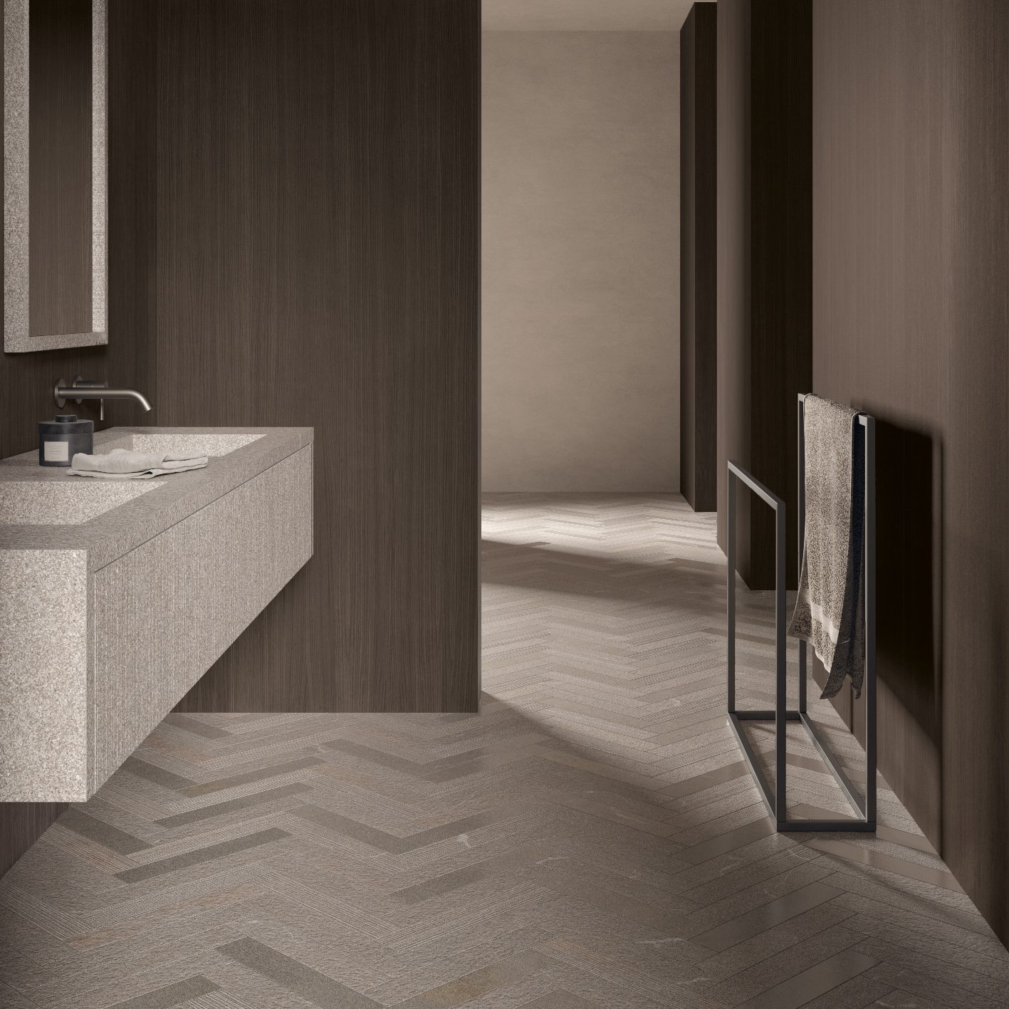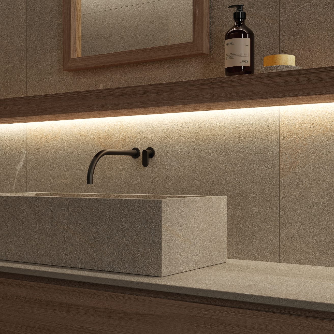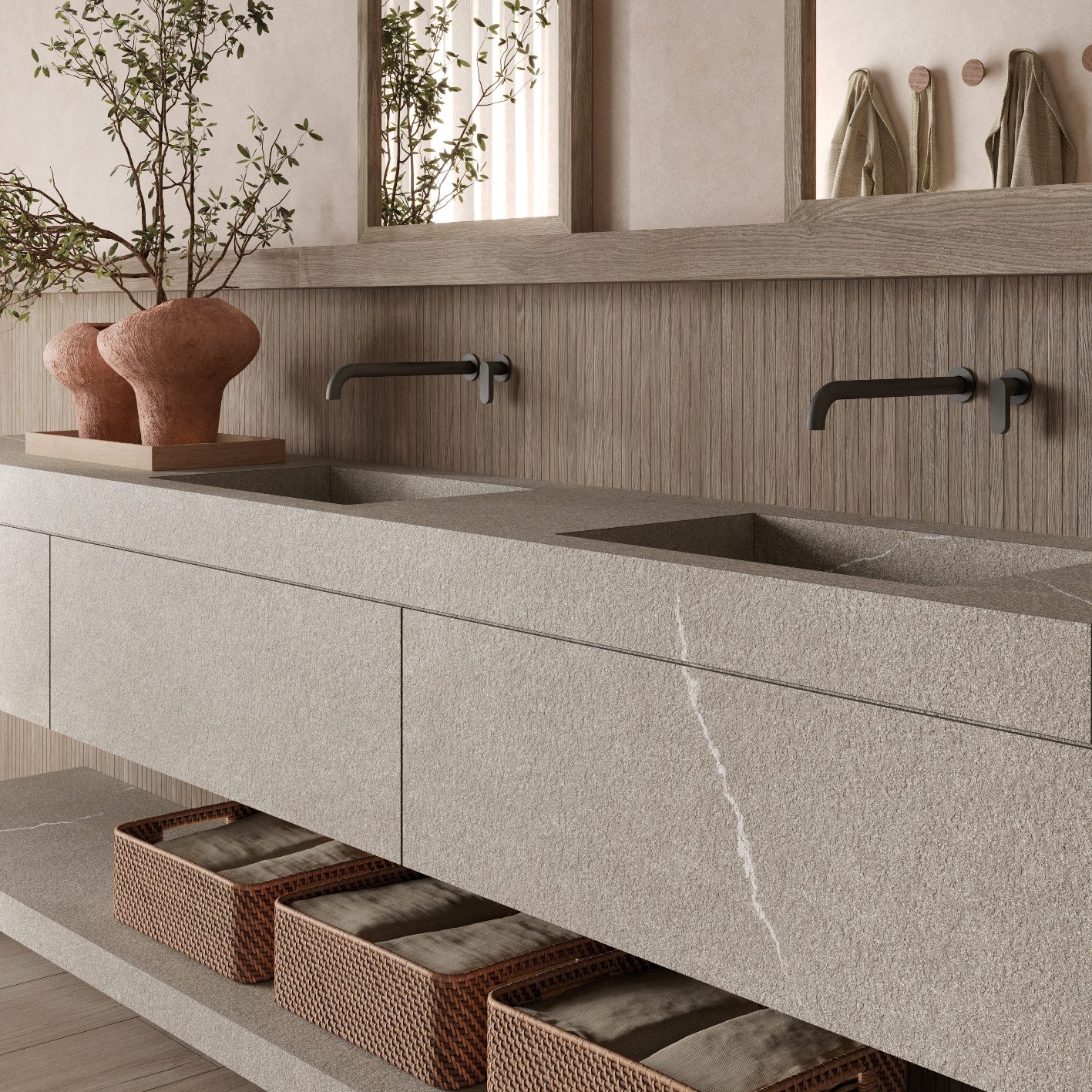 Modelet autentike të venave të gurit Piasentina kombinohen me ngrohtësinë e drurit për të krijuar hapësira që frymëzojnë qetësi dhe rigjenerim, me një humor paqeje dhe mirëqenie të thellë. Çdo veçori është zgjedhur për të ofruar një përvojë të plotë shqisore, ku mirëqenia arrihet përmes zhytjes në një mjedis që pasqyron bukurinë dhe qetësinë e natyrës.