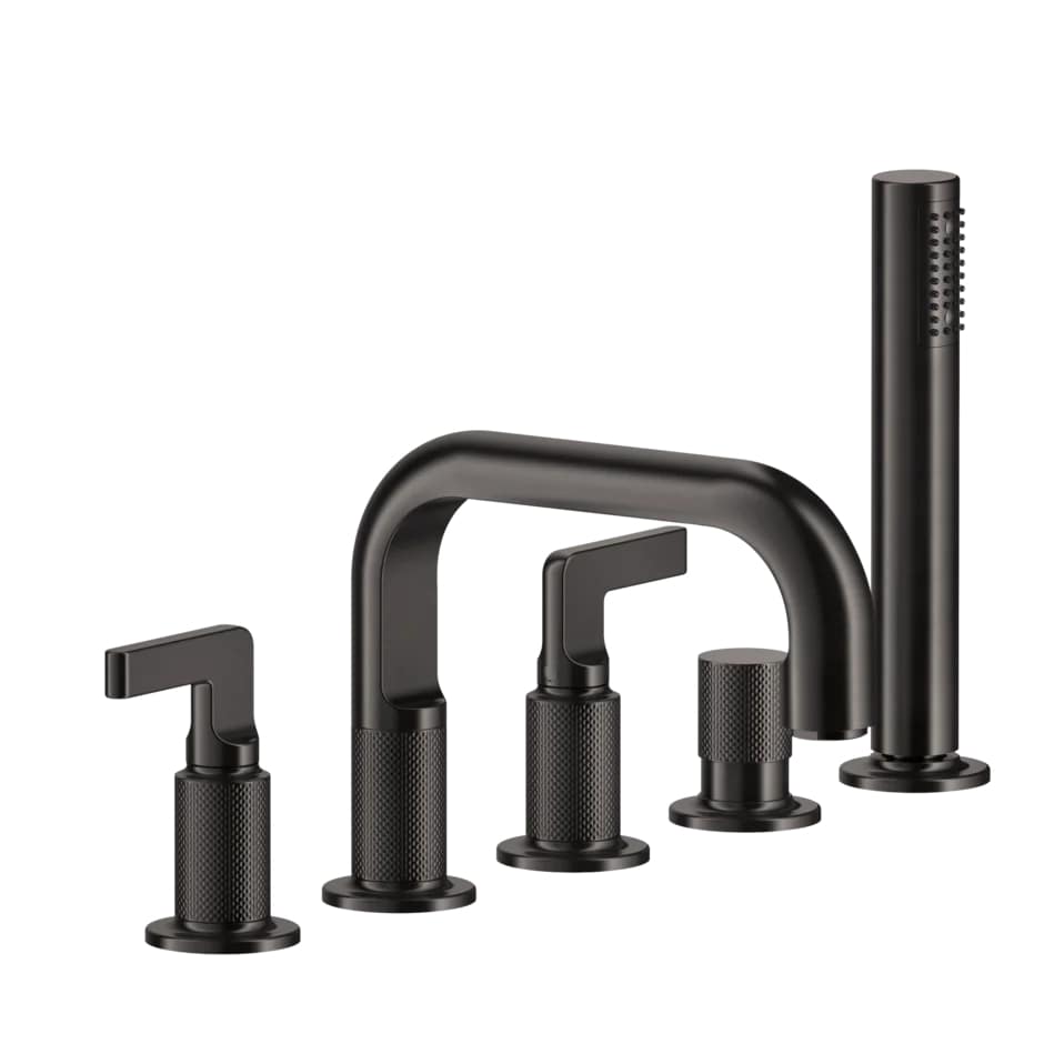 Inciso- Five-hole Bath Mixer with diverter and handshower 707 Black Metal Brush