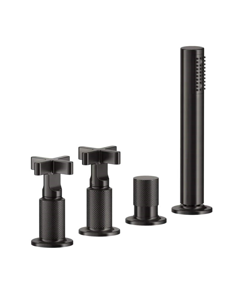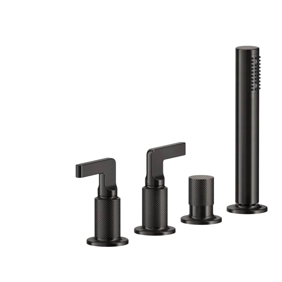 Inciso Four-hole Bath Mixer with diverter and handshower 707 Black Metal Brush